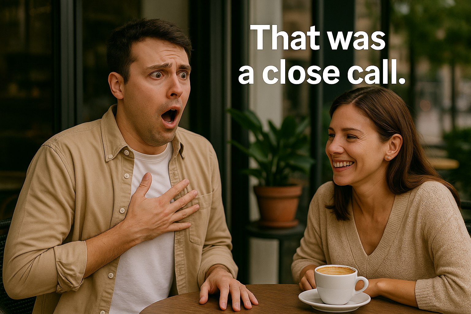 That was too close! → 더 짧고 강한 표현 (“진짜 위험했어!”)