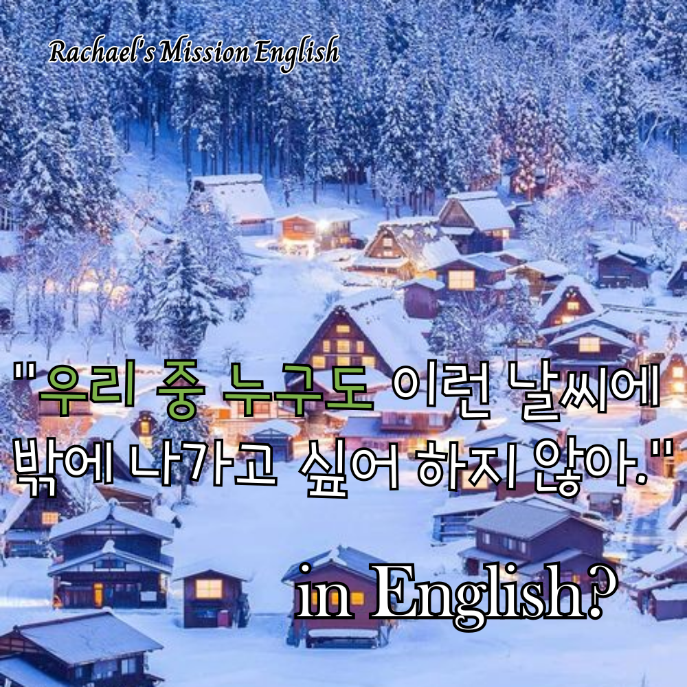 (우리 중 누구도 이런 날씨에 밖에 나가고 싶지 않아.)
